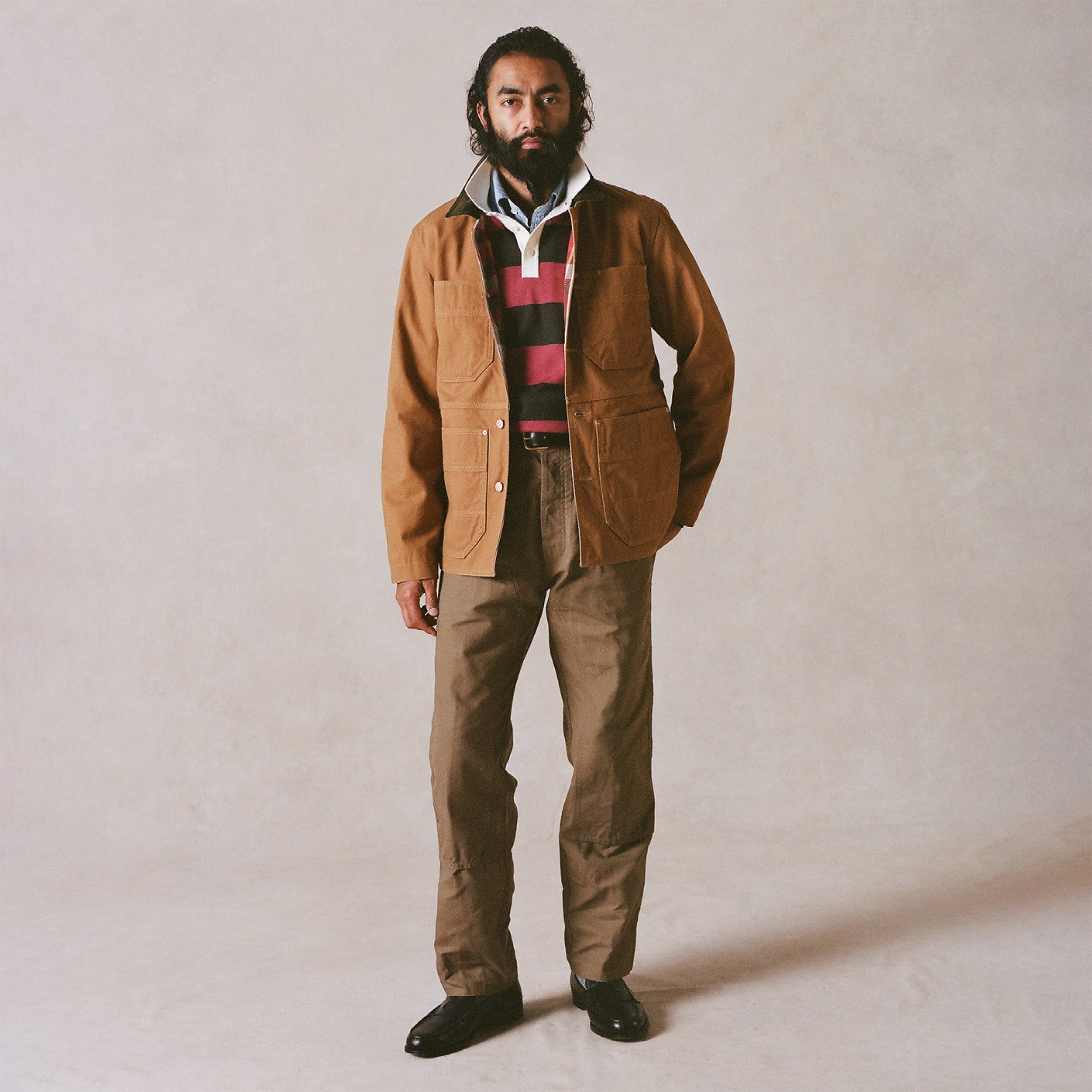 Drake’s, founded in London in 1977, is renowned for understated elegance and meticulous craftsmanship. Today it offers refined tailoring, knitwear, shirting, and accessories with a timeless British sensibility.